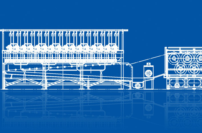 本設備采用溶劑溶解,干噴濕紡法紡織高強高模聚乙烯纖維,該纖維主要用于生產防彈衣,高強度纜繩等。生產工藝流程:采用超高分子量聚乙烯凝膠紡絲工藝, 通過超倍拉伸制成高強高模聚乙烯纖維,整個過程采用自主研發的組合生產工藝包括:制漿,紡絲,冷卻,落桶,平衡,集束,萃取,干燥,牽伸,收卷等十個主要單獨過程。